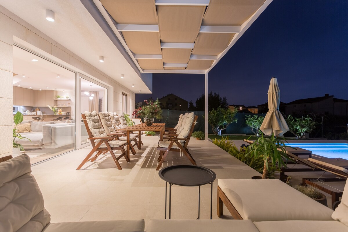Villa Fox Exclusive was newly build and represents modern & luxury style on the Dalmatian coast. Villa is situated in quiet and peaceful area with amazing views of the Mediterranean sea and islands. Surrounded by autochthon plants, olive trees and palms, villa inviting you to spend nice and relaxing holidays with your family and friends. Heated swimming pool and nearby beach makes this villa as good spot during your stay in Croatia.