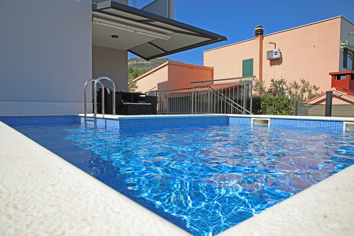 This modern and luxury apartment with pool is ideal for family vacation. Relax by the pool on the spacious terrace. Perfectly located in Kaštel Novi between UNESCO cities Split and Trogir. Split Airport is just 5 km away. The center, bars, restaurants and beach is just 2 km away. Enjoy 100 sq. m. flat with spacious living room, 3 bedrooms, 1 bathroom and 1 toilette. You are free to use 1 000 sq. m. outdoor house area consist of pool, terrace, garden area, kids playground and parking spot.
