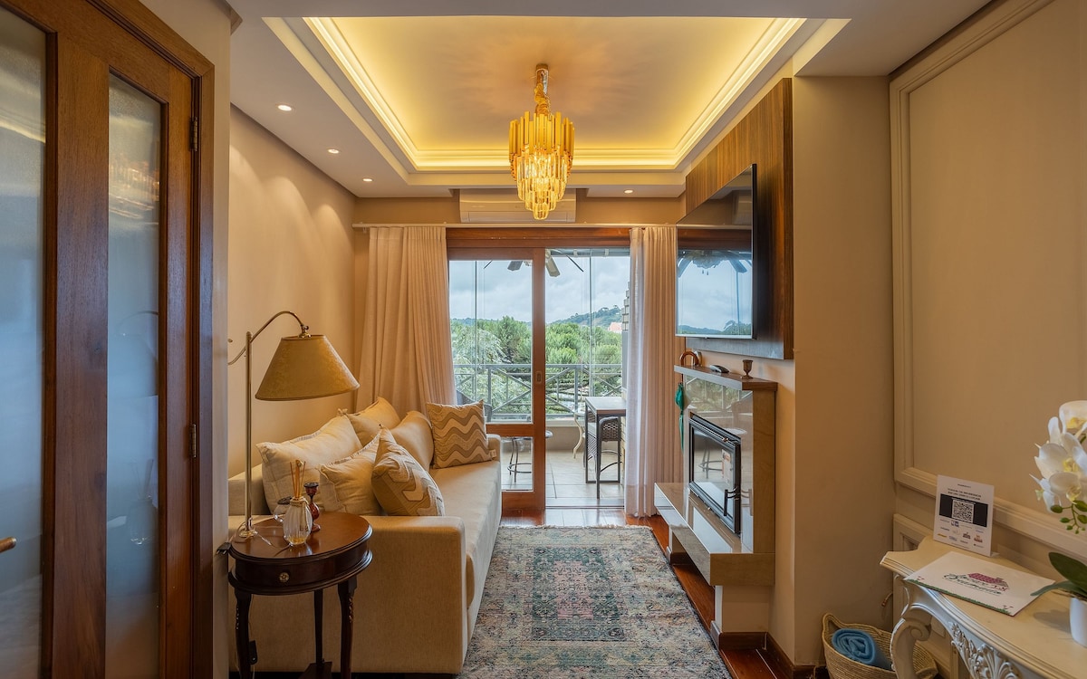 넓고 매력적인 공간에서 편안함과 평온함을 추구하는 커플과 가족에게 적합합니다! 광섬유 와이파이, 2개의 차고, 바비큐 그릴이 있는 폐쇄형 발코니, 친환경 벽난로, 넷플릭스가 있는 스마트 TV 55 '및 32인치, 디즈니 플러스 및 아마존 프라임, 프리미엄 매트리스, 최상층 샤워실, 세탁기가 있는 개별 서비스 공간, 침실과 거실의 난방 물, 침실과 거실의 에어컨, 완비된 주방, 커피 공간, 숲이 우거진 조용한 곳에 위치