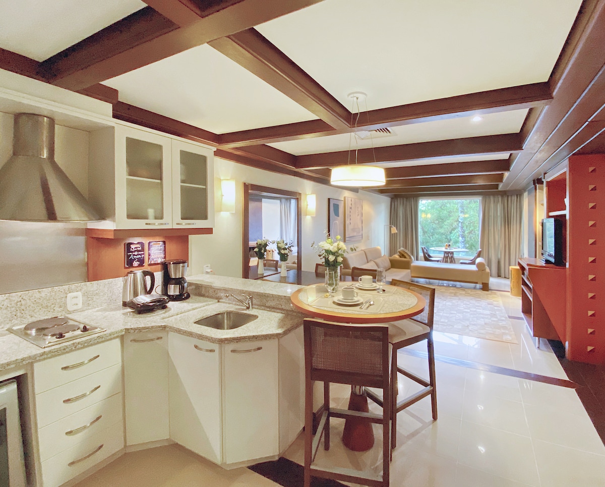 몬테인 빌리지, 콘도미니엄 라제 데 페드라에 위치한 고급스러운 스위트로, 아름다운 숲, 정자, 야외 놀이터, 야외 헬스장, 분수가 있는 호수, 거위와 백조, 자연과 아름다운 주택으로 둘러싸인 장소입니다. 플랫은 매우 아늑하며, 세라의 특별한 매력을 가지고 있습니다. 호텔 서비스와 완비된 주방을 갖추고 있습니다! 행복하세요! 마음껏 즐기세요!