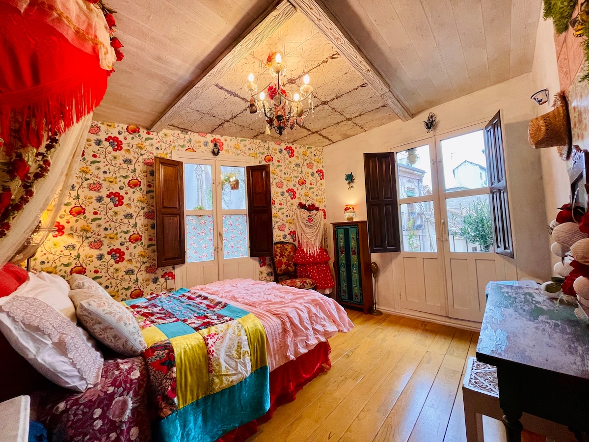CASA DEL BESO The house is very authentic, with a terrace and views of the Alhambra, it was designed and rehabilitated by our father, Manuel, an architect who emigrated with our grandparents and who years later returned to his land, to our beloved Granada. It is located on a pedestrian street in the Lower Albayzin, 300 m. from Plaza Nueva, a largely pedestrian UNESCO heritage district. Thanks to the location you will not need the car and you can walk to the most emblematic places of Granada.