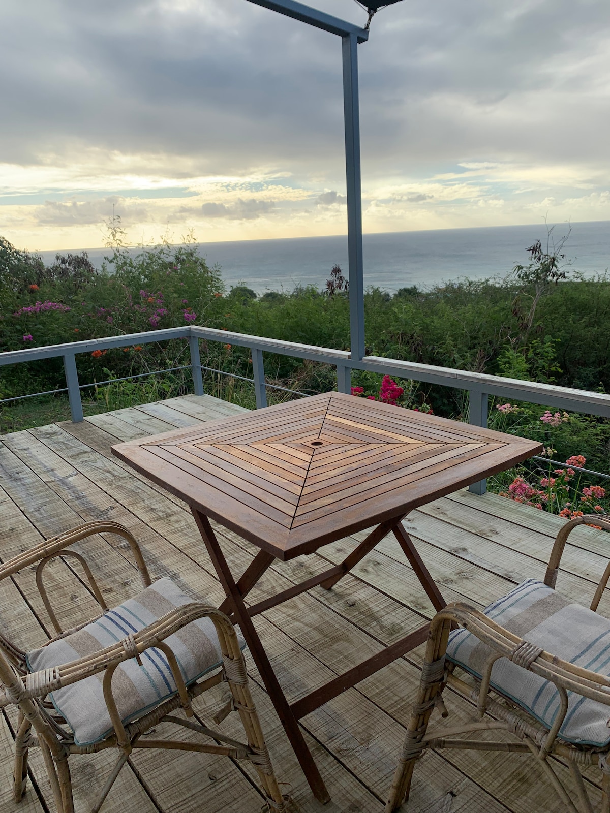 Seclusion , tranquility with breath taking views of the Indian Ocean , The perfect lodgings for lovers of the outdoors , nature , hikers ,plenty of fresh air .Built on stilts on the side of a mountain with views over the lagoon and the Indian Ocean , have breakfast facing the rising sun . Access via a private road lined with fruit trees ,beautiful set stone steps leading up to the lodge . mins to local amenities and local transport ,but scooters or off road cars advised as it is well hidden .