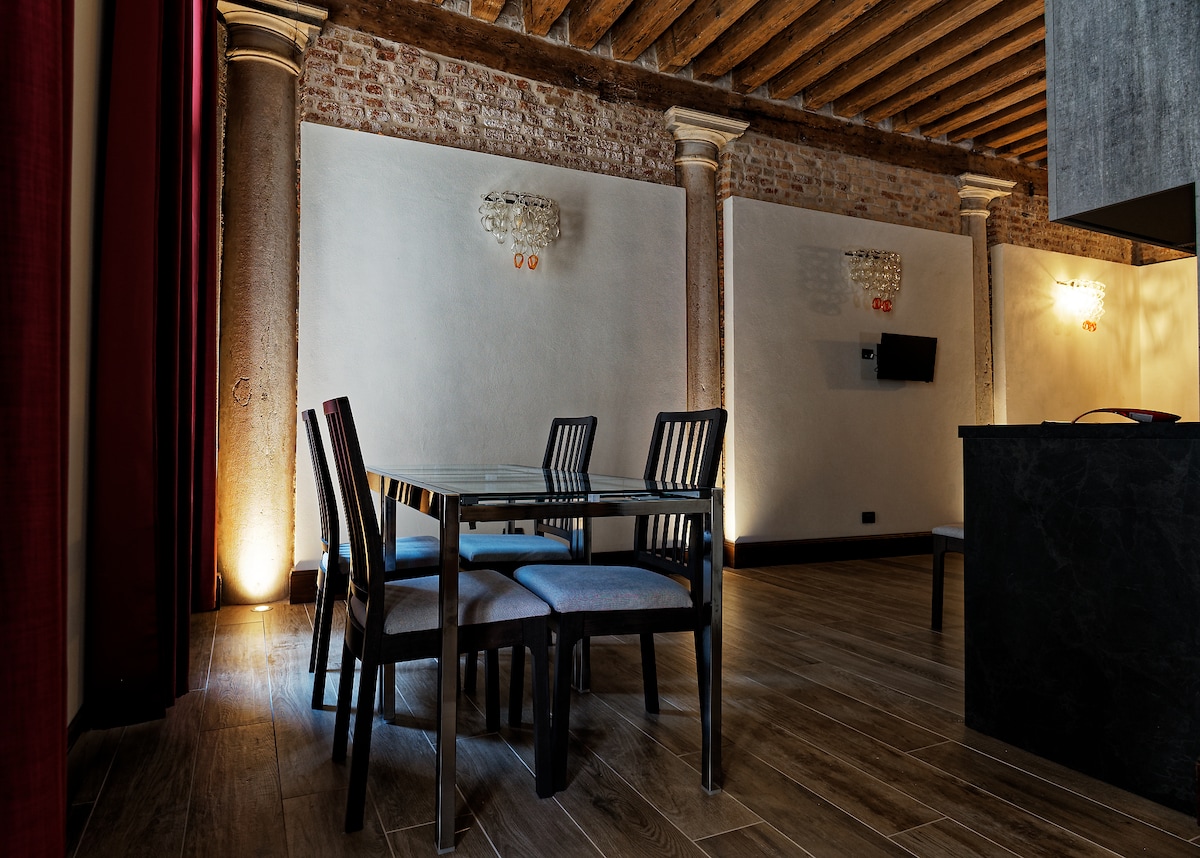 베네치아의 종탑과 운하의 놀라운 전망을 감상하며 책을 읽고 아침과 저녁 식사를 즐기며 아늑하게 지내세요. 리알토 다리, 카 도로, 산 마르코에서 몇 걸음 거리에 있는 베네치아의 가장 전형적인 지역에서 베네치아와 무라노 장인이 만든 가구와 장식품으로 마된 아파트에서 진정한 베네치아인처럼 살아보세요. 1800년대의 환상적인 분위기를 경험하는 듯한 기분을 느낄 수 있지만 현대적인 아파트의 모든 편안함을 누릴 수 있습니다. 이 놀라운 경험을 놓치지 마세요.