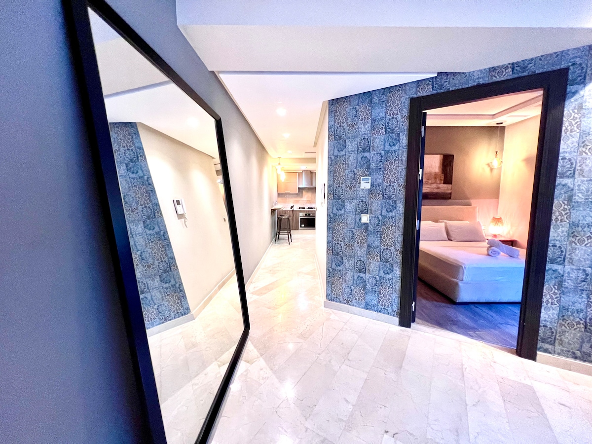 Luxurious and spacious studio in the center of near the Aeria mall, Morocco mall, Casa Finance city, Anfa park, Center of business Technopark, and 10 minutes from the Ain Diab beach Super equipped sunny located in the prestigious CFC district A large living room opens onto a beautiful terrace south facing enjoying of the ideal casa town to enjoy moments of sunny relaxation Enjoy the private gardens, play areas for children and a sports hall heated jacuzzi spa available all year round very sunny