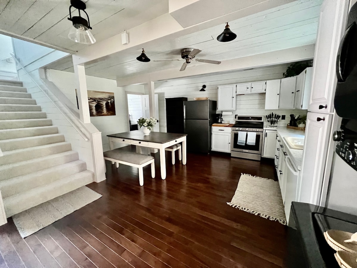 제 아름답게 리모델링한 숙소에 오신 것을 환영합니다! 두 욕실 모두 완전히 리모델링되었으며, 이제 광택 나는 바닥과 타일로 된 샤워실을 자랑합니다. 숙소의 모든 조명 기구와 선풍기가 업그레이드되었습니다. 주방은 새로운 석영 조리대와 비닐 판자 바닥으로 멋지게 단장했습니다. 뒷마당에는 새로운 웨버 그릴이 있습니다! 화덕에서 불을 피우고 제공되는 장작과 모든 장비로 마시멜로를 구워보세요! 시내까지 도보로 가까운 거리에 있으며, 해변까지 차로 가까운 거리에 있습니다!