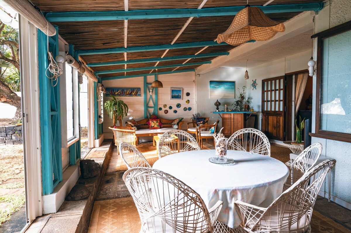 저희 전원주택은 휴식을 원하는 커플에게 이상적인 숙소입니다. 저희는 평화롭고 안전한 가족 단지에 있습니다. 해변(60m 거리)으로 바로 연결되는 전용 정원에서 집 전체를 이용하실 수 있습니다. 게스트는 멋진 정원, 숙소의 프라이버시, 해변으로 바로 연결되는 것을 높이 평가합니다. 라군은 스노클링과 수상 스포츠에 이상적입니다. 매일 메이드가 방을 청소하고 청소를 합니다. 차량용 간이 차고가 있습니다.