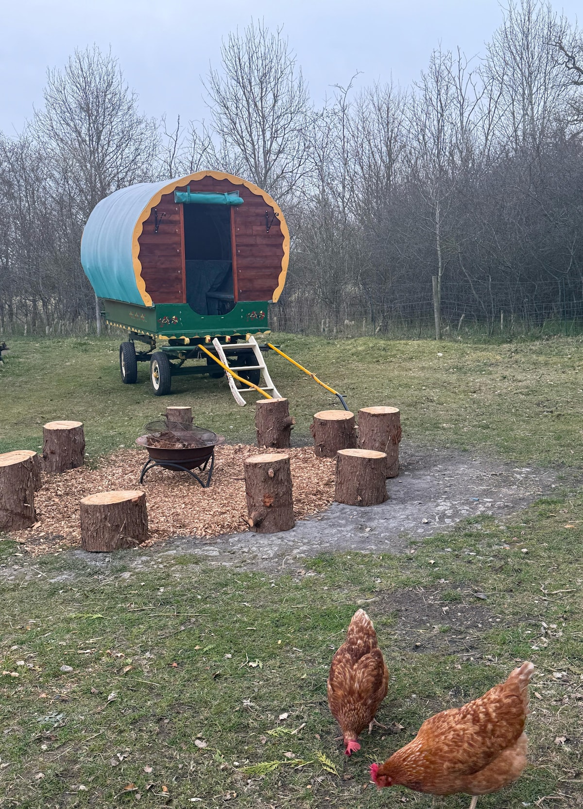 welcome to Huckleberry Farm, spend a night under canvas without having to pitch a tent! & discover how it felt to live on the open road. stopping overnight in the countryside with just basic facilities. Sit around the campfire with the ponies nearby & the sights & sounds of nature to soothe your mind. This is basic, authentic accomodation. There is no shower, kitchen or hot tub. We have fresh water & a portaloo! Free range eggs & pony rides available as optional extras. max 1 adult 1 child