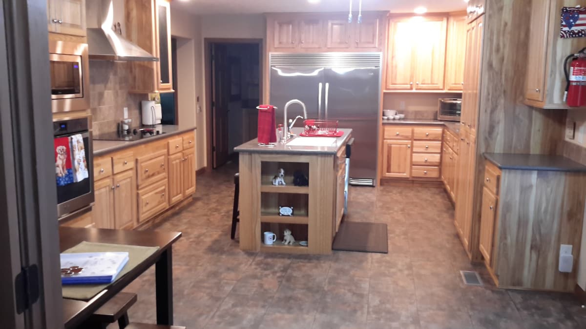 퓨리나 팜에서 4분 거리에 있는 이 공유 숙소는 여러분의 프라이버시를 위해 마련되어 있으며, 자쿠지 욕조, 전용 데크, 침실 3개, 욕실 2개, 가스 벽난로, 완비된 주방, 최대 20명까지 이용할 수 있는 실내 및 야외 식사 공간(이벤트나 회의는 호스트에게 문의), 세탁기(공용), 개를 위한 울타리, 편안한 정원 공간, 숲속 산책로, 야외 화덕, 여름철 지상 수영장을 즐길 수 있습니다. 주말 여행과 휴식을 취하고 싶은 사람에게 적합합니다.