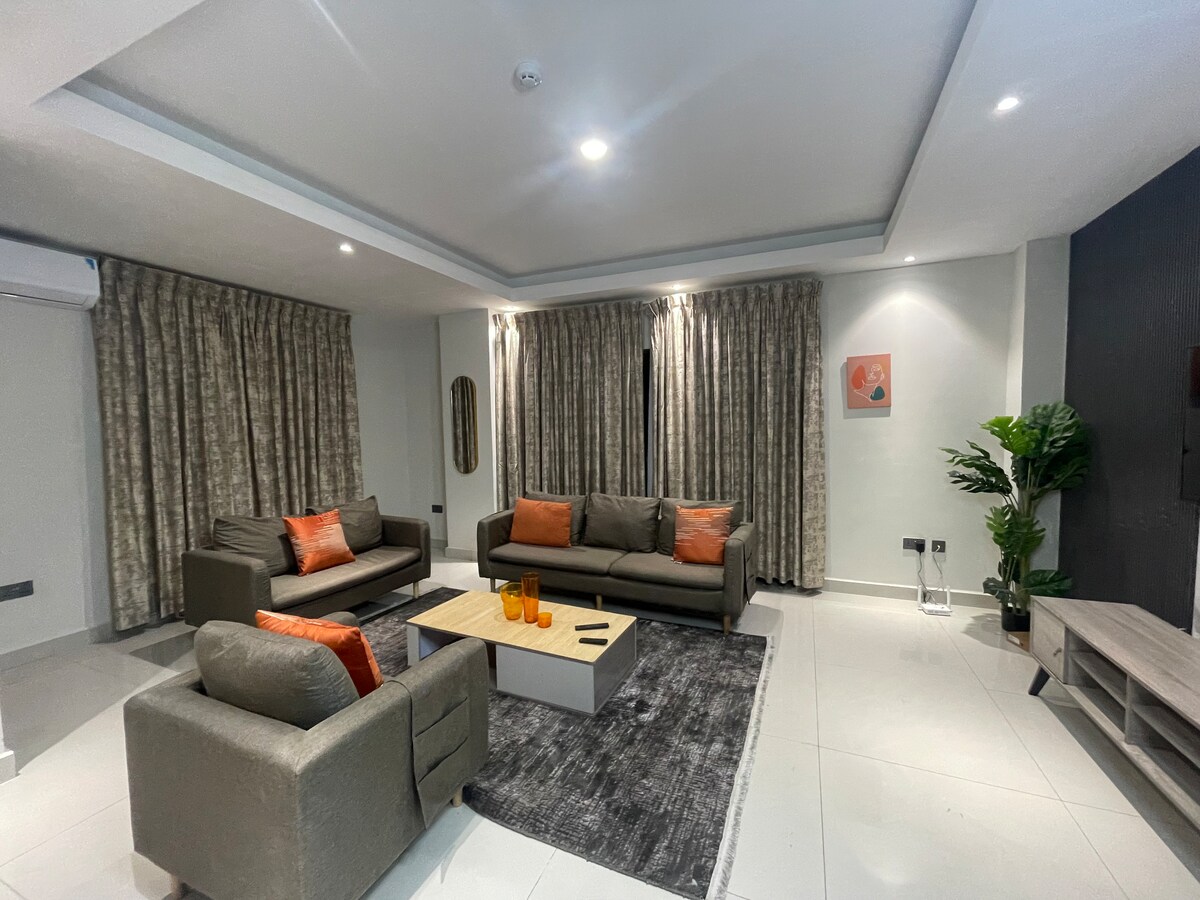 Welcome to the stylish 2BR 2BA apartment in the sought-after gated community with 24/7 security. Whether you're looking to explore exciting Lashibi, Sakumono, and Accra attractions, spend the day at the beach, or sample local cuisine, this prime location provides the perfect starting point for adventures. ✔ 2 Comfortable Queen Bedrooms ✔ Relaxing Living Area ✔ Fully Equipped Kitchen ✔ Private Balcony ✔ Smart TV ✔ Wi-Fi ✔ Community Amenities (Pool, Gardens, Security) ✔ Parking See more below!