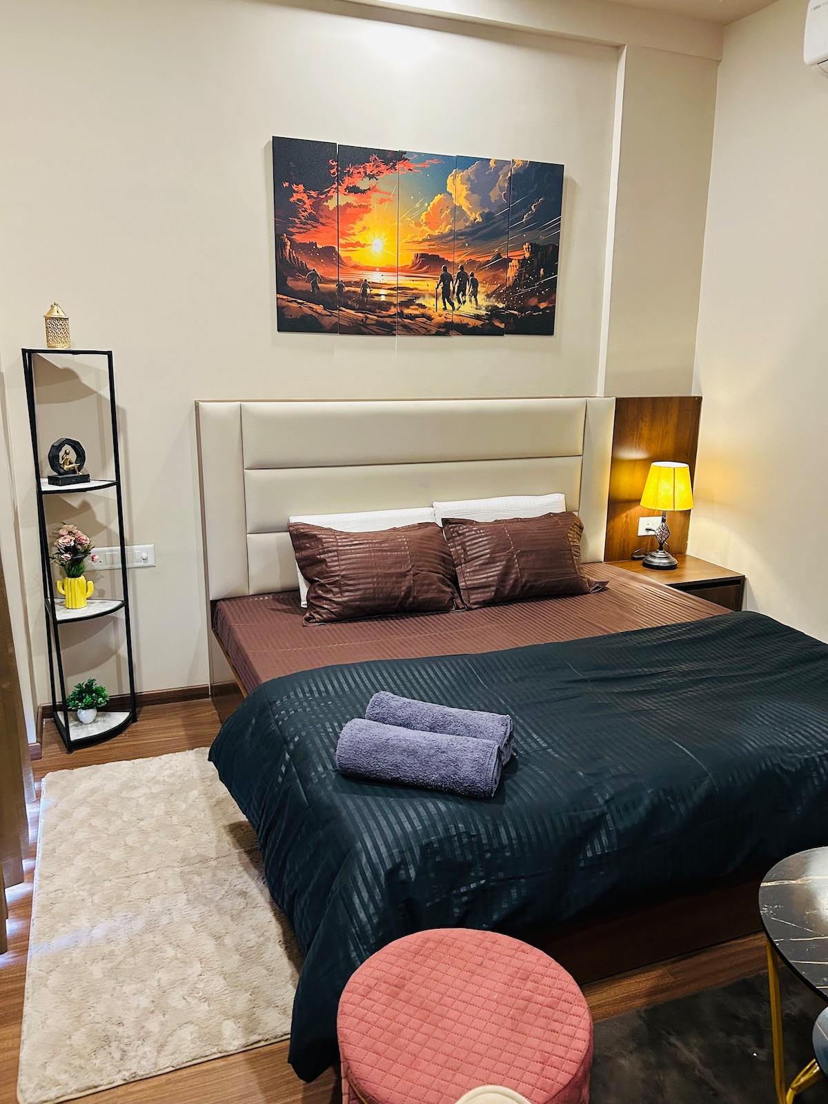 지하철역 근처 그레이터 노이다에서 모든 현대적인 편의 시설을 갖춘 고급스러운 스튜디오 아파트입니다. 그레이터 노이다에 위치한 고급스럽고 넓은 커플 친화적인 스튜디오로 엑스포 마트 근처에 있습니다. 마음에 드실 만한 점: ✔ 독특한 인테리어 – 매혹적인 인테리어를 즐기세요. ✔ 모던한 편안함 – 편안한 침대, 아늑한 좌석, 세련된 인테리어가 돋보이는 아름답게 꾸며진 공간. 시설이 ✔ 완비된 주방 – 좋아하는 식사를 간편하게 요리하세요. ✔ 빠른 와이파이 및 스마트 TV – 연결 상태를 유지하고 즐거운 시간을 보내세요.