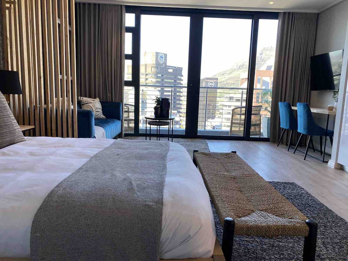 벽에서 벽까지 이어지는 창문의 블라인드를 열어 아침에 바닷바람과 산 전망을 즐겨보세요. 빠른 와이파이 속도를 자랑하는 이 아파트는 이상적인 위치에 있으며 밝은 느낌을 더하는 개방형 디자인으로 세련되게 꾸며져 있어 재택 근무나 휴가에 적합합니다. 시포인트 산책로, V&A 워터프론트, 애틀랜틱 시보드 해변에서 가깝습니다. 장기 숙박의 경우 일주일에 한 번 이상 청소하여 아파트를 새롭게 단장합니다. 휴식을 취하고, 탐험하고, 헹구고, 반복하세요!