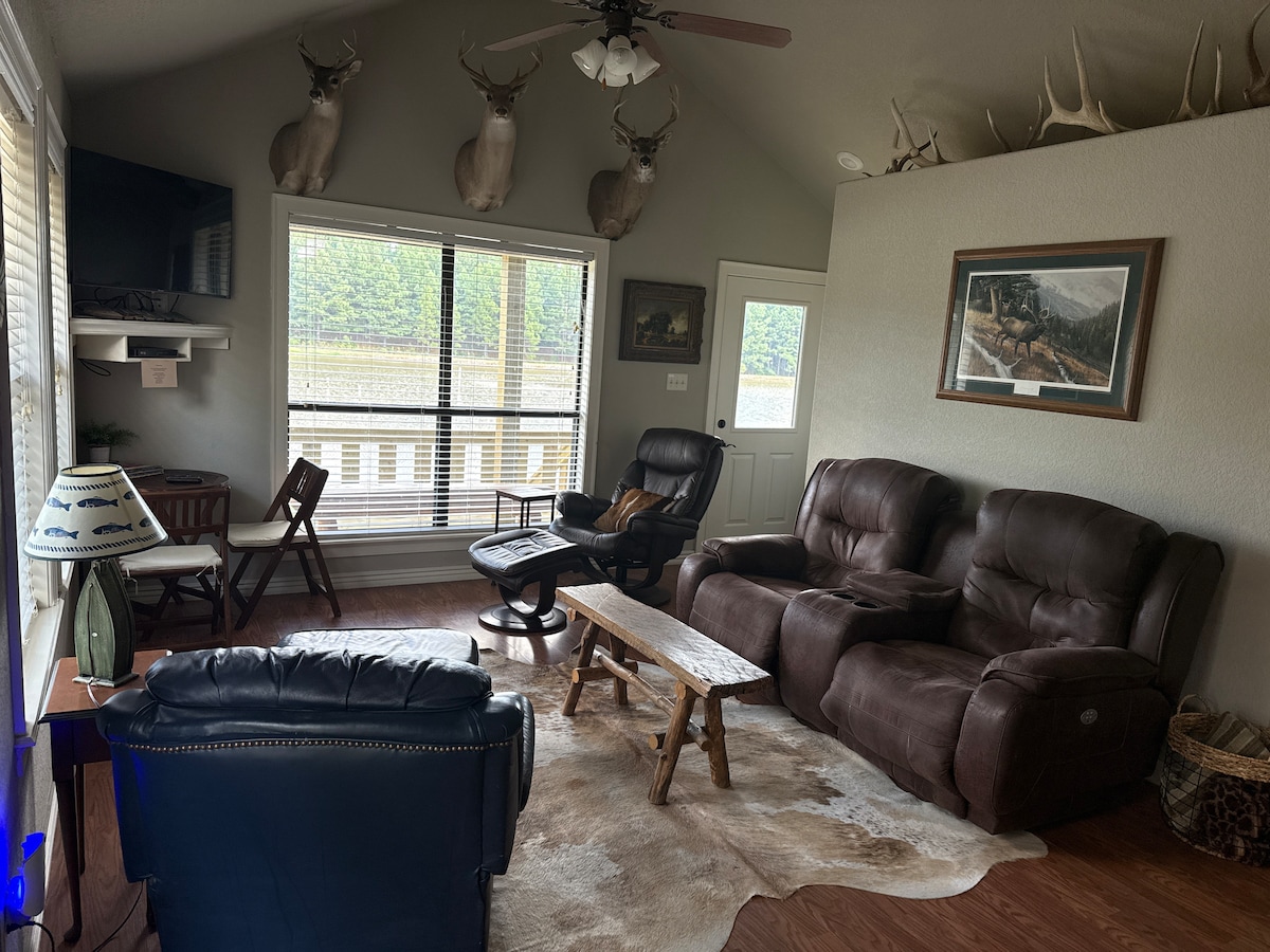 평화로운 휴양지. 5에이커 호수에서 잡고 풀어주는 낚시가 가능합니다. 주변에 자연이 있는 통나무집 느낌. 필요한 것이 있으시면 주택 소유주가 가까이 있습니다. 와이파이 사용 가능.