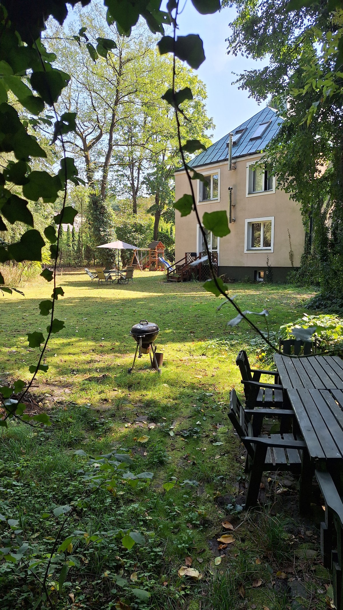 Zafunduj sobie odpoczynek i wyciszenie. Miejsce na pobyt dla rodziny/pary/przyjaciół. Całoroczny dom na 5-hektarowej działce z 6 niezależnymi apartamentami o wysokim standardzie (nowoczesne łazienki z bidetami, wygodne łóżka). Siedlisko położone w centrum posesji, w otulinie lasów i sadów – cisza, spokój i prywatność. Możliwość wypożyczenia rowerów oraz gokartów na pedały dla dzieci. 3 minuty od Suntago, blisko DeepSpot i Fabrycznego Żyrardowa.