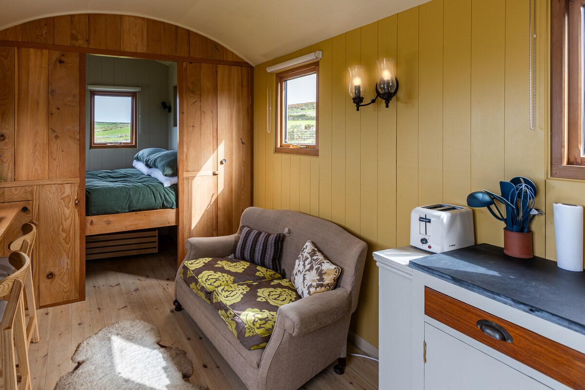 루크스 네스트 마차는 독특한 휴가 경험을 제공합니다. 아름다운 분위기에 있는 쾌적하고 아늑하면서도 밝은 작은 공간입니다. 콘월 서부를 탐험하기 위한 이상적인 장소입니다. 매우 컴팩트한 공간에는 매트리스가 갖춰진 편안한 더블 침대, 좌석 공간, 오븐과 호브, 냉장고, 온수와 냉수, 블루투스 스테레오, TV, 장작이 제공되는 나무 버너가 있습니다. 정원에 별도의 건물이 있습니다. 바입니다. 이용하실 수 있습니다.