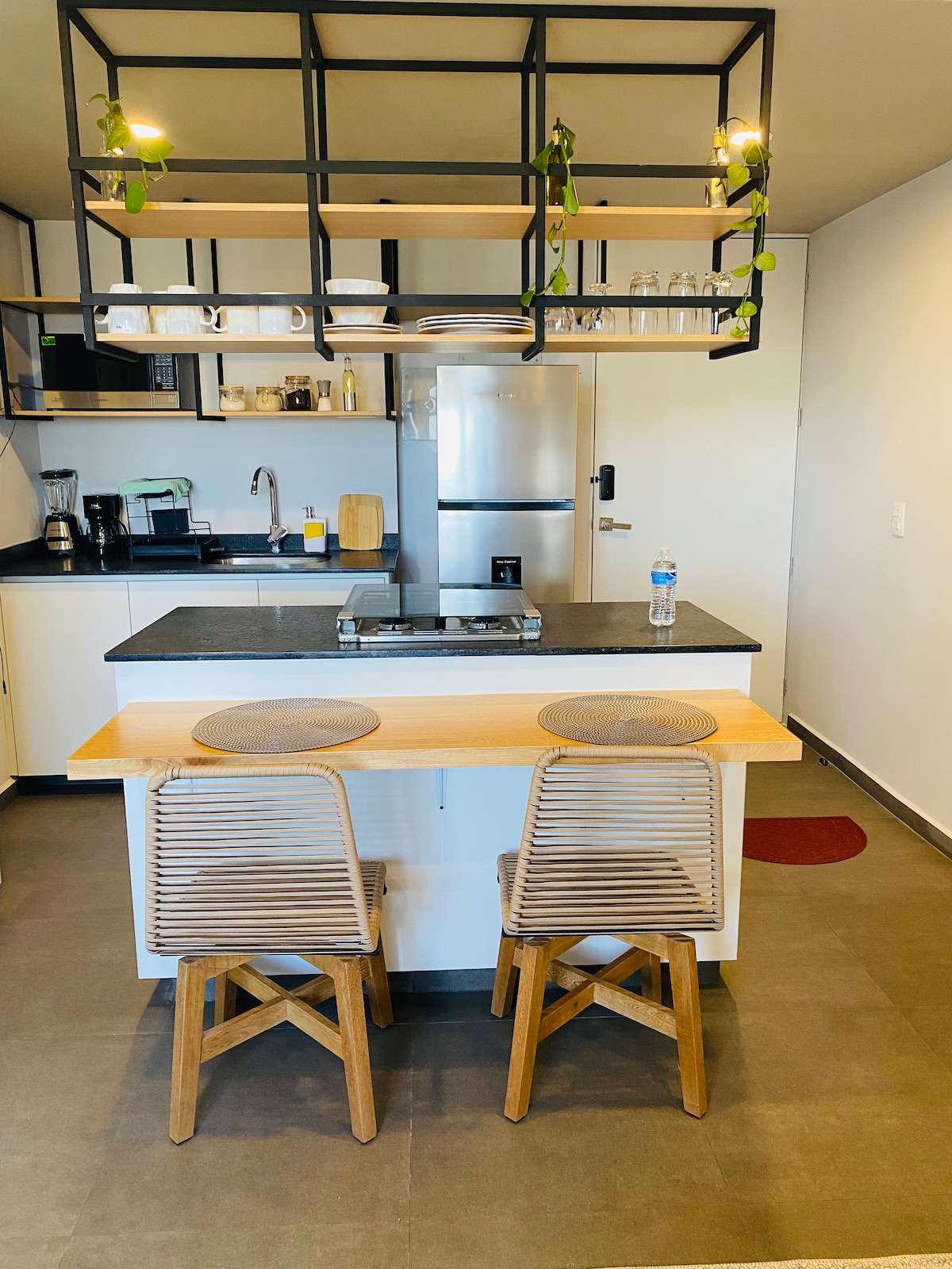 다양한 스타일이 조합되어 독특한 경험을 선사하는 장소에서 산책과 하루의 시작을 맞이하세요. 소박하고 다채로운 가구가 현대적인 아파트에 생기를 불어넣습니다. 발코니는 보석과도 같습니다. 스튜디오 타입의 이 아파트는 모든 활동이 상호 연결되어 넓은 느낌을 주는 개방형 공간입니다. 매우 큰 창문을 통해 내부 공간에 많은 조명과 도시의 멋진 전망을 제공하는 테라스와의 연결을 항상 즐길 수 있습니다. 이곳이 여러분의 집이 되어 드리고 싶습니다. 최대한 즐기시기 바랍니다. 여러분을 기다리겠습니다!! 1층에는 다양한 종류의 약용 식물, 식용 식물을 즐길 수 있는 도심 속 텃밭이 있으며, 개인적인 용도로 유기농 수확을 할 수 있어 숙박 경험을 풍요롭게 할 수 있습니다. 많은 사랑으로 디자인된 아주 멋진 공간이기 때문에 즐기시기 바랍니다. 그것을 살아가시고 즐기시기 바랍니다. 기다리겠습니다!!! 저희에게 있어 여러분의 숙박과 편안함이 가장 중요하며 여러분이 가지고 계신 모든 요구 사항을 즉시 해결하기 위해 주의를 기울일 것입니다. 기꺼이 여러분을 기다리고 있으며 의심할 여지 없이 최선의 선택인 저희 아파트를 즐기시기 바랍니다. 이 아파트는 조용하고 문화적이며 미식적인 지역에 위치하고 있으며 과달라하라를 경험하기에 이상적입니다. 후아레스 시장 또는 멕시코 시장에서 3블록, 역사 지구에서 도보로 20분 거리에 있습니다. 걸어서 도시를 둘러보고 이동할 수 있는 것이 좋습니다. 이 아파트는 역사적인 중심지, 파세오 차풀테펙 근처의 조용하고 문화적이며 미식적인 지역에 위치하여 과달라하라를 경험하기에 완벽합니다. 아름다운 도시의 많은 매력을 교통비를 쓰지 않고도 즐길 수 있습니다. 창문을 열면 아파트에 사는 느낌이 매우 쾌적하고 아늑하며 테라스와 통합된 공간이 있어 매우 즐거운 시간을 보낼 수 있습니다. 밤에는 테라스에서 멀리 비행기가 이륙하는 것을 볼 수 있으며 이는 즐길 수 있는 광경입니다. 자유의 거리 또는 후아레스 시장 주변(테라스에서 왼쪽으로 돌면 2블록 거리에 있음)에서는 여러 카페에서 맛있는 아침 식사를 즐길 수 있으며, 대부분의 카페에는 나무와 식물이 있는 테라스가 있어 매우 즐겁고 조용한 시간을 보낼 수 있습니다.