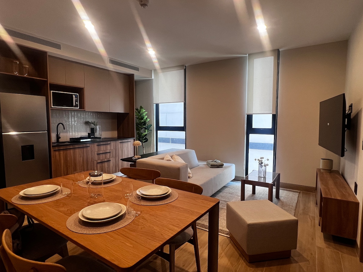 -22층 수영장 - 도시 전망을 감상할 수 있는 아름다운 헬스장 -장기 숙박에 적합한 시설 완비 - 주차 가능(추가 요금) - 하우스키핑 서비스: 7박 이상 예약 시 일주일에 한 번 출장이든 레저 여행이든, 미드타운 할리스코 쇼핑몰 근처의 프로비덴시아 지역의 새로운 럭셔리 타워에서 현대적인 스튜디오를 즐기실 수 있습니다.