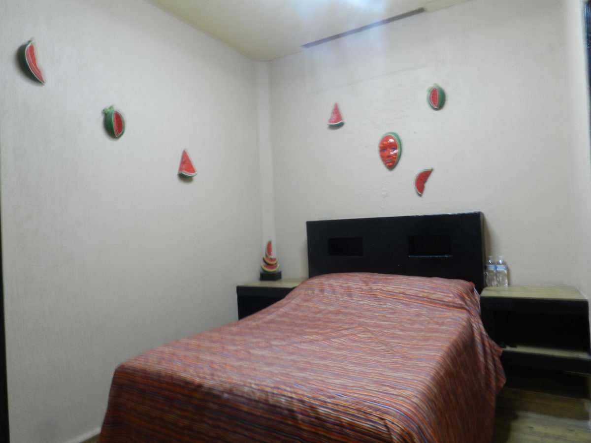 이 숙소는 호텔 유형의 멋진 객실입니다. 이 편안한 숙소에서 몇 걸음 거리에 있는 카페, 레스토랑, 바, 상점을 쉽게 이용할 수 있습니다. 사포판 센터의 중심부에 위치하고 있습니다. 다음과 같은 곳에 매우 가깝습니다: 3호선 전철 4블록 ISSSTE 발렌틴 고메즈 병원 4블록. 사포판 대성당 3블록 차로스 스타디움 1.5km km 텔멕스 강당 1.8 km 칼레 2 2.5 km 산탄데르 단지 2.8 km 안다레스 5km 주차장이 없습니다.