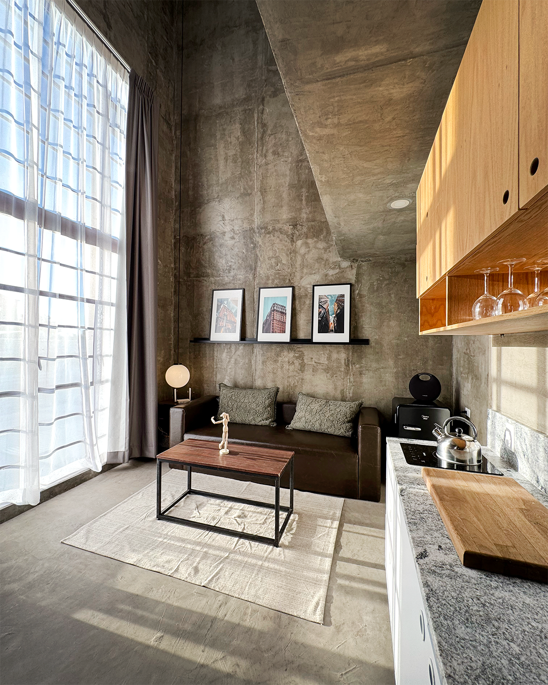 이 절충적인 스튜디오 아파트에서 도시 산책을 시작하세요.