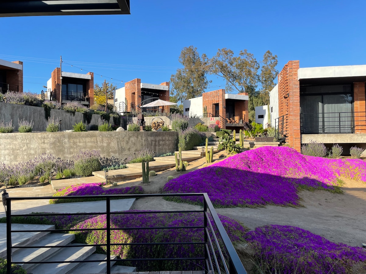 Experimenta el Encanto del Valle de Guadalupe en Nuestro Hotel Boutique. Estamos convenientemente ubicados en el corazón de la ruta del vino, sobre una calle principal lo que significa que tendrás fácil acceso a las bodegas locales, restaurantes y tiendas