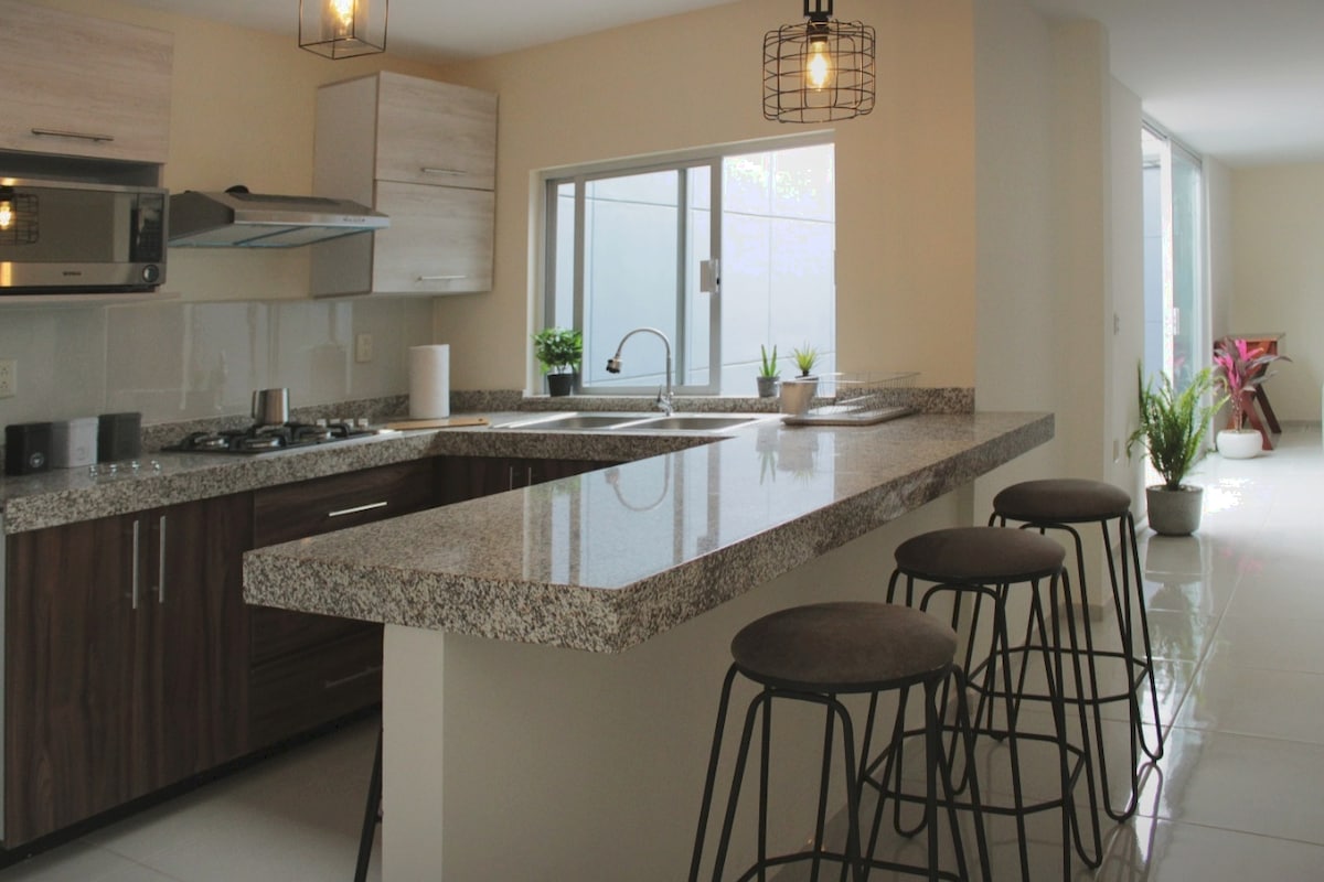 Desconecta de tus preocupaciones en este espacio tan amplio y sereno. Privada con puerta de control remoto, tranquila y cómoda, con estacionamiento privado para 2 vehículos y patio trasero techado Estamos a tus órdenes, con la intención de que tengas la mejor experiencia en tu estadía