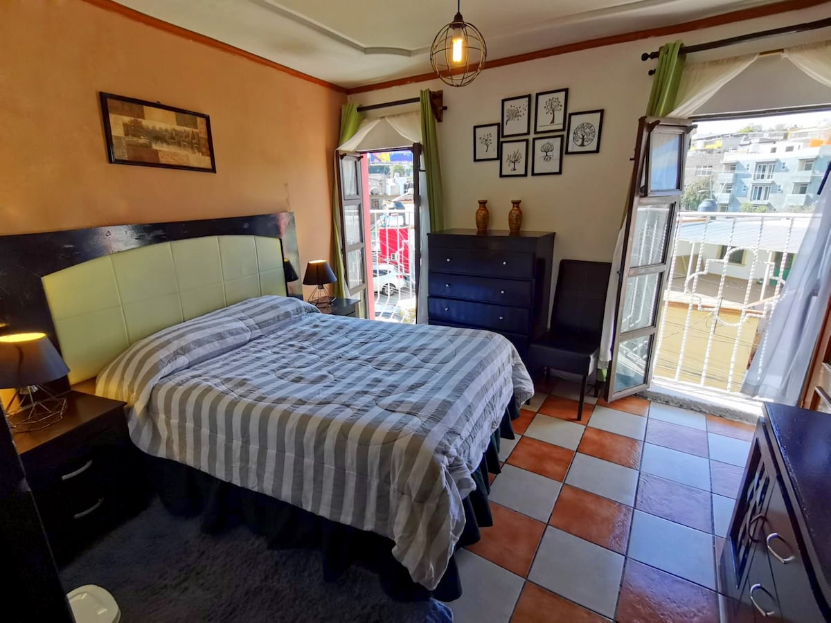 ¡En zona centro a 8 minutos a pie de bicentenario! Ubicación estratégica que te permite planear tu viaje sin calles complicadas de difícil acceso, la habitación cuenta con cocina, mini sala y zona de descanso, el edificio es compartido con 2 departamentos más, escaleras, terraza y mini gimnasio son compartidos únicamente. Tiene buenas vistas, cerca de tiendas de autoservicio, farmacia y escuelas, el vecindario es muy amable y seguro. Ven y disfruta de un espacio a medida.