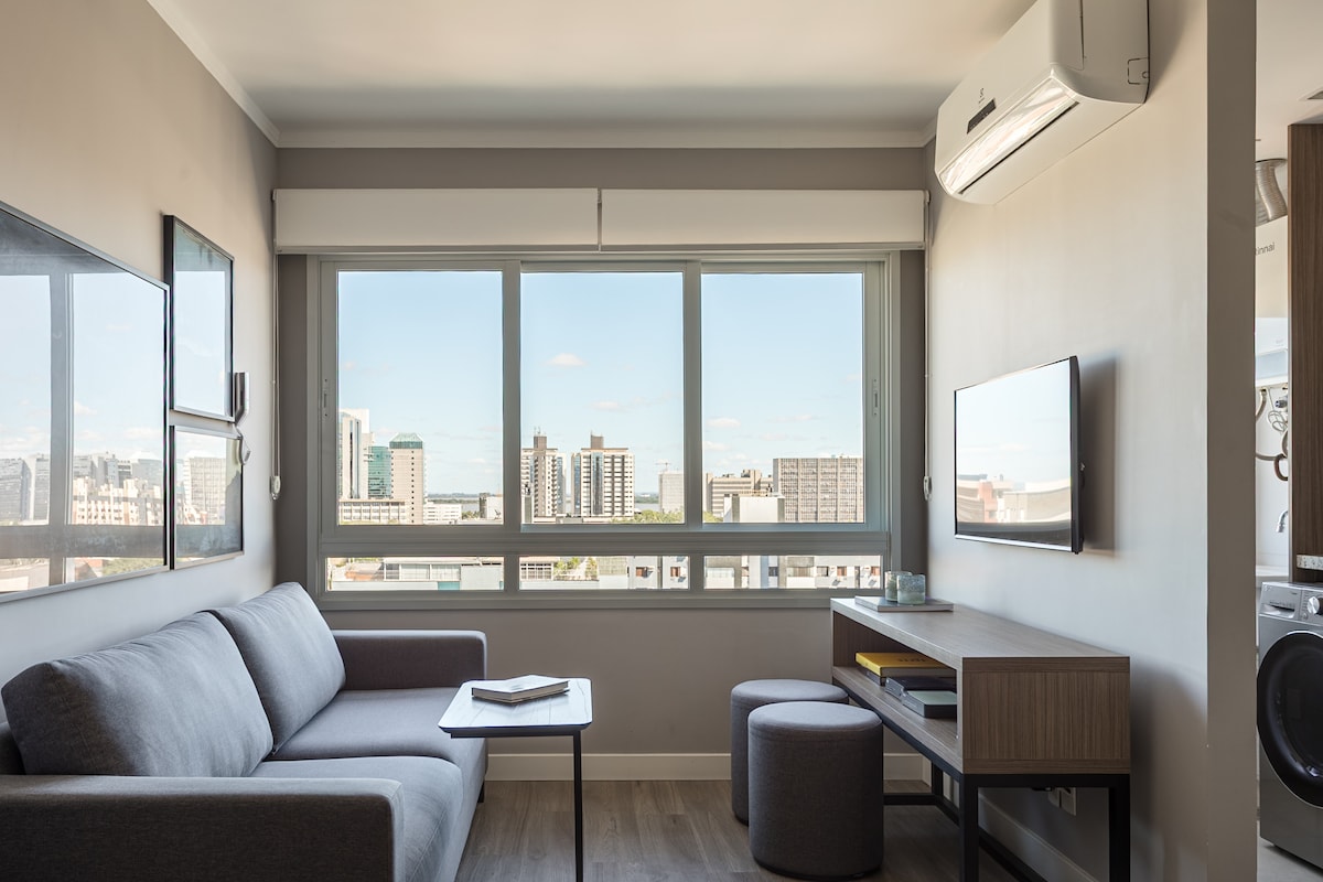 ⭐️ 이제 알렉사와 함께 자동화되었습니다! LED 스마트TV 50인치, 무료 주차 공간, 24시간 컨시어지, 게스트 3명(매트리스), 수영장, 피트니스 센터, 세탁, 옥상 19층, 24시간 공동 작업 공간! 에어프라이어, ⟶ 전자레인지, 토스터기가 있는 주방! • ⟶ PUCRS까지 2분 • 영사관과 시내까지 15분 • 초고속 와이파이 • 엘리베이터 • 에어컨 • 넷플릭스, 유튜브, 디즈니+, 아마존, 글로보플레이 등 • 유연한 체크인 • 반려동물 동반 가능(사전 통보) • 인근 슈퍼마켓! 수건과 침구 포함!:)
