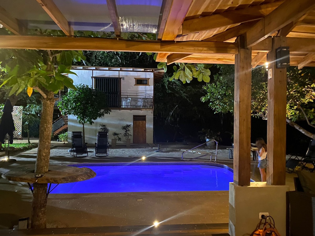 Apartment near the mountain in a rural street with a natural tropical environment, neighborhood with a lot of privacy, quiet 15 minute walk to Playa del Coco, close to supermarkets, ideal for biking or running, small pool for 4 or 5 private people, garden with stone, full kitchen to use, bathroom with open shower so you will have a different experience when taking the shower, space to work, nature ,glamping experience