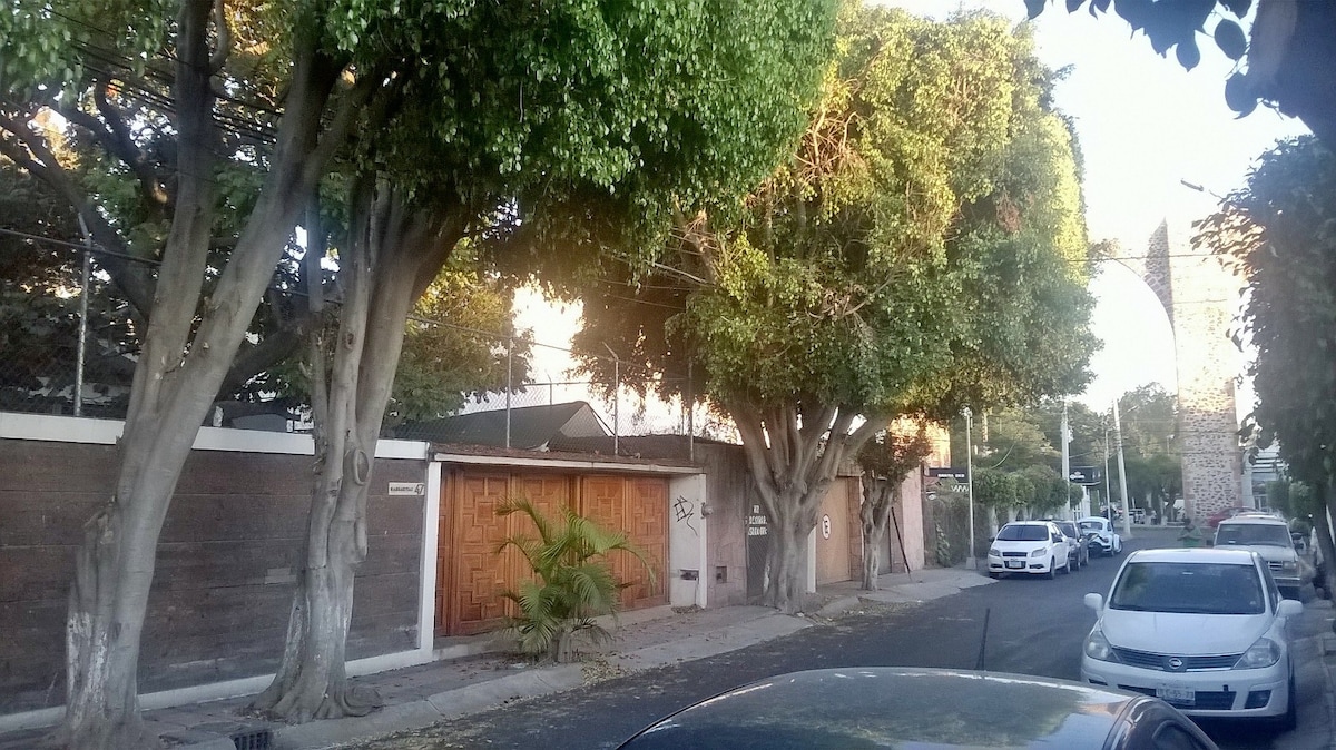 Excelente ubicación y segura, zona dorada de Querétaro, para gente de todo el mundo, en la mejor zona turística de Querétaro, a 50 metros de los arcos y aprox. 500 metros del centro histórico, entre bares, restaurantes, cafeterias y parques. Contamos servicio de lavandería, acceso a sala de televisión, cocina con refrigerador exclusivo para huéspedes, mesa de billar, mesa de ping pong y mesa juego de mesa. Estacionamiento cerrado con puerta automática.