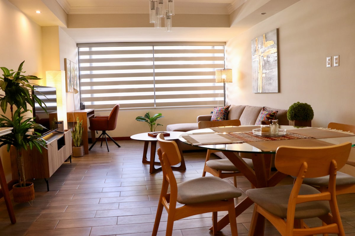 Vive de la experiencia de alojarte en un apartamento moderno con amplio balcon completamente nuevo en Guatemala, con la mejor ubicación en zona 10 (Zona Viva). Nuestro apartamento con toques modernos, elegantes que acompañan de una vista sin igual, brindan calma y tranquilidad en una de las zona más exclusivas de nuestro país. Tendrás la oportunidad de alojarte cerca de centros comerciales, restaurantes y zona hotelera a menos de 5 minutos a pie.