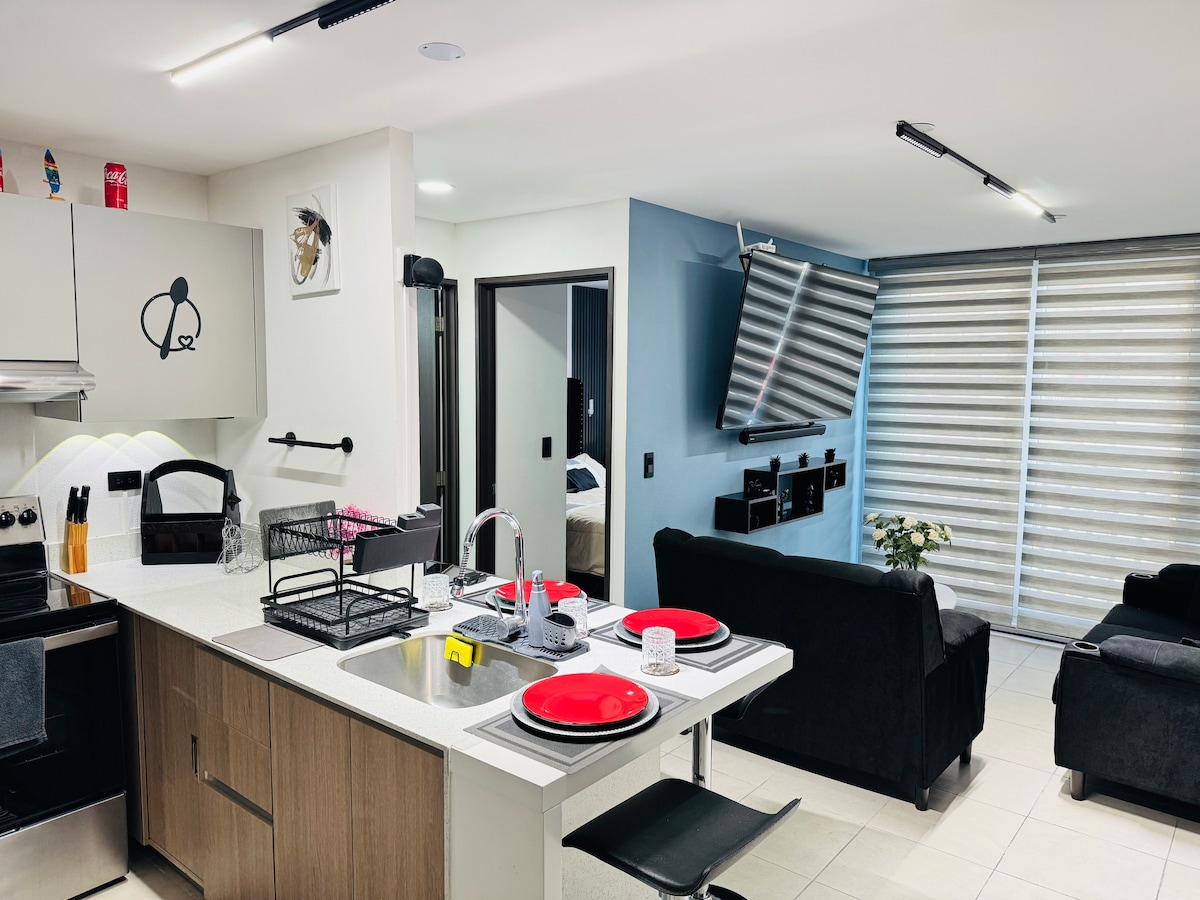 Disfruta una experiencia premium en este moderno 1BR en Quo, el edificio más icónico de Zona 4. Incluye parqueo privado gratuito y está a pasos de 4 Grados Norte. Ideal para ejecutivos, parejas o estancias tranquilas en el corazón de la ciudad.