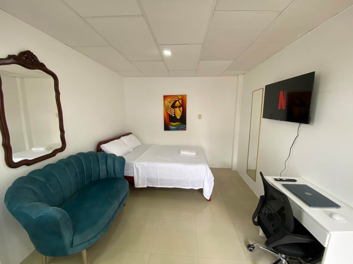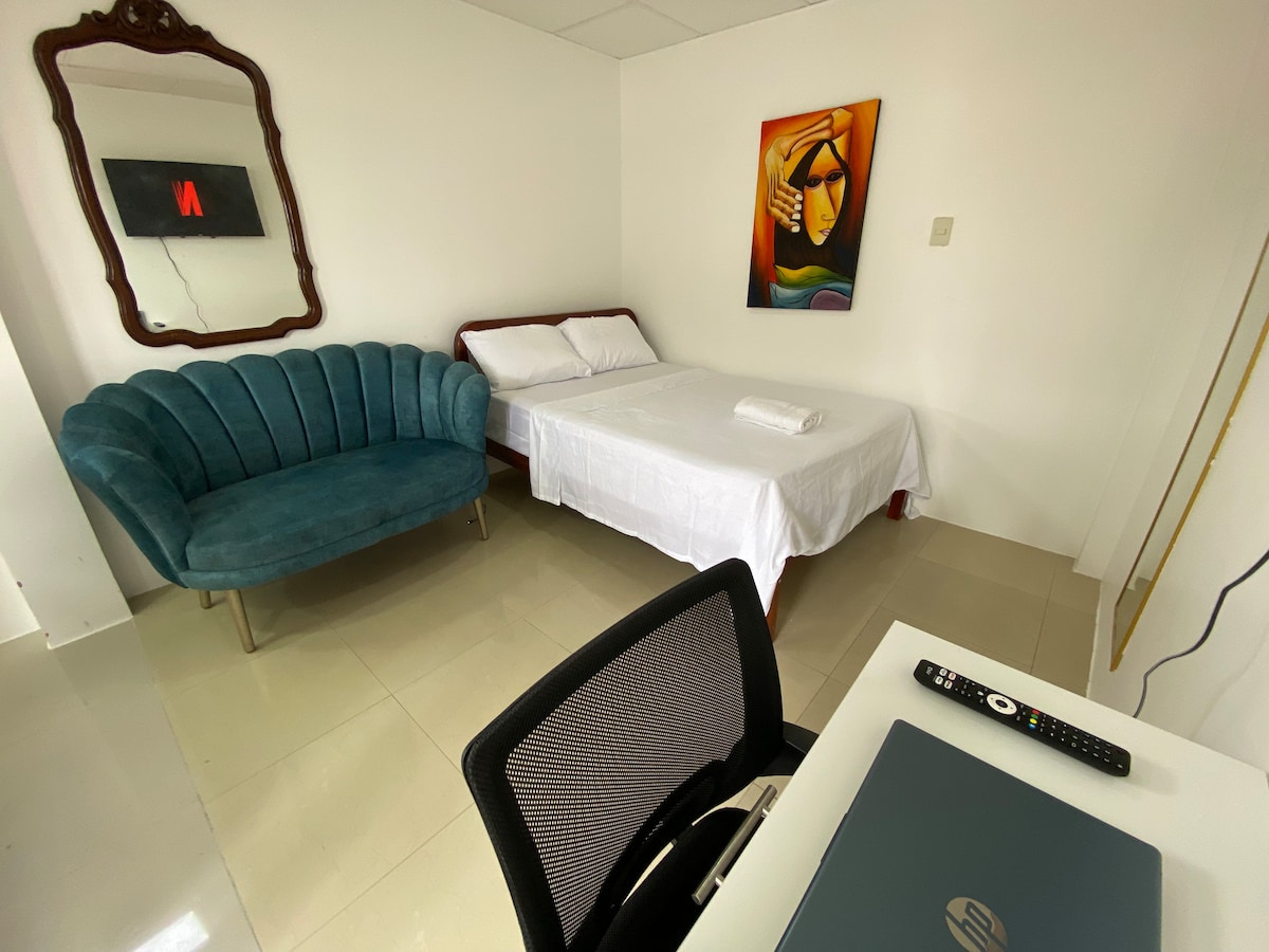 Relájate en esta escapada única y tranquila 🏡 Parqueo Privado doble garita seguridad con QR 🚘 Ideal para una persona 🙋♀️ Seguridad privada 👮♂️ Piscina en el club social 🏊 Tiendas y restaurantes cerca ✅ Aire acondicionado ✅ Wifi ✅ Cocina completa ✅ Baño privado ✅Entrada independiente ✅ Parqueo privado