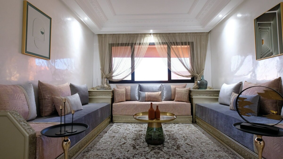 ✨ Caprice Royal Elegant apartment in the heart of Hivernage, Marrakech’s most prestigious area. Calm, secure and perfectly located, everything is within walking distance: restaurants, shopping and landmarks. Enjoy the comfort of a private apartment with high-end standards. Experience Marrakech in style, day and night.