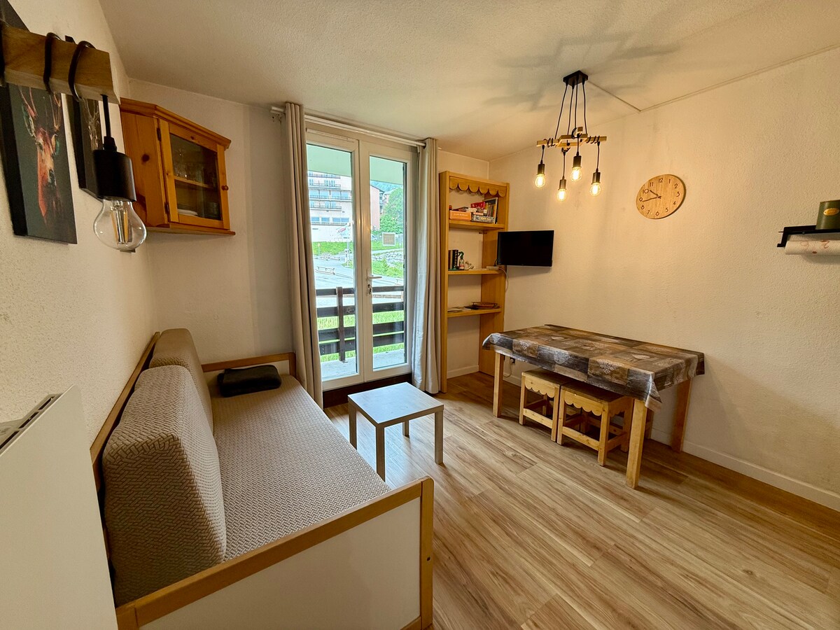 Refait récemment tout à neuf cet appartement de 22 m carré se situe au 3 eme étage de la résidence EDELWEISS au cœur de la station avec parking gratuit à côté et à une centaine de mètres des remontées mécaniques. Il dispose d une SDB avec baignoire , d un toilette separe, d un open Space avec coin nuit disposant d un lit 2 places et d un coin salon avec un BZ se dépliant en un couchage 2 places. Une cuisine équipée, Air fr, cafetiere, un lave linge, une tv grand écran et un grand dressing.
