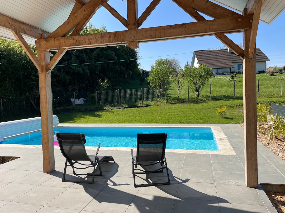 Bel appartement dans ancienne maison bรฉarnaise avec 1 chambre, salle de bain complรจte, mezzanine, salon kitchenette, ouvrant sur terrasse รฉquipรฉe d'un mobilier de jardin. Situation idรฉale en voiture ร 7 minutes des Thermes de Salies de Bรฉarn et 6 minutes du trรจs beau site de Sauveterre de Bรฉarn, 2 citรฉs de caractรจre. Ballades accessibles ร pieds depuis la maison. Nous sommes ร 1 heure ร peine de la mer et de la montagne. L'รฉtรฉ, nos cours d'eau offrent de magnifiques lieux de rafraรฎchissement.