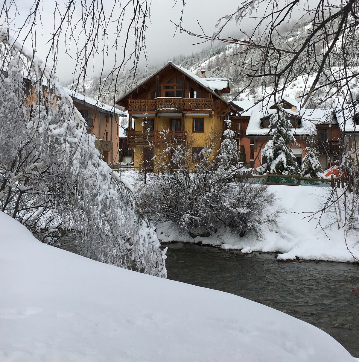 Independent chalet for 6 people with large terrace.(BOOKING ONLY ON AIRBNB) Located in a quiet area, on the bank of the Arc River and close to the ski resorts (see details of the distances in the description:how to access) the Vanoise Park. Ideal for successful holidays in both summer and winter time! Whether your passion is mountain, skiing, fishing or family holidays...the chalet is for you! Direct access to the river. 1 identical chalet nearby> possibility to rent both for 12 people