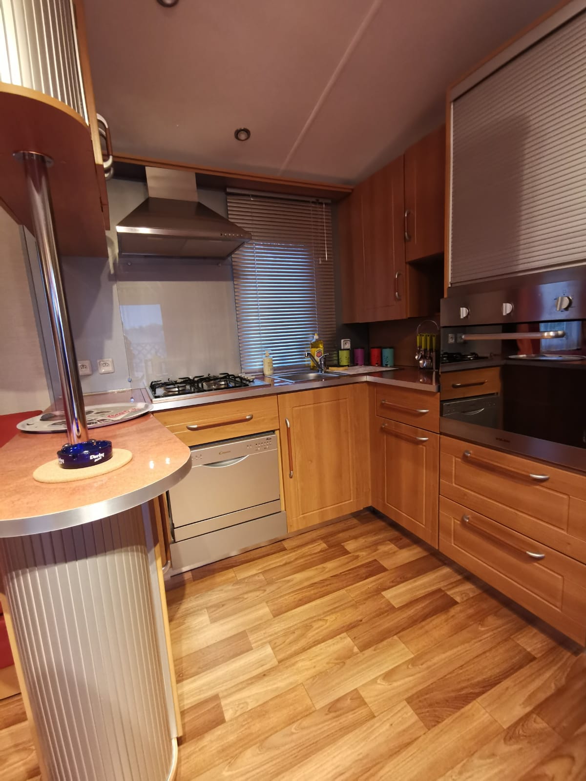 6명이 숙박할 수 있는 40㎡의 에어컨이 완비된 이동식 주택: 침실 3개(침대 160cm 1개와 침대 2개씩 2개). 시설이 완비된 주방: 4구 가스레인지, 전자레인지, 냉장고 냉동고, 커피 머신, 토스터, 식기류… 바비큐. 거실: 평면 TV, 6인용 식탁… 욕실 2개: 샤워기, 세면대, 변기 2개. 정원 가구, 데크 체어가 있는 20㎡ 테라스, 220㎡ 전용 정원… 호숫가에 위치한 캠핑장