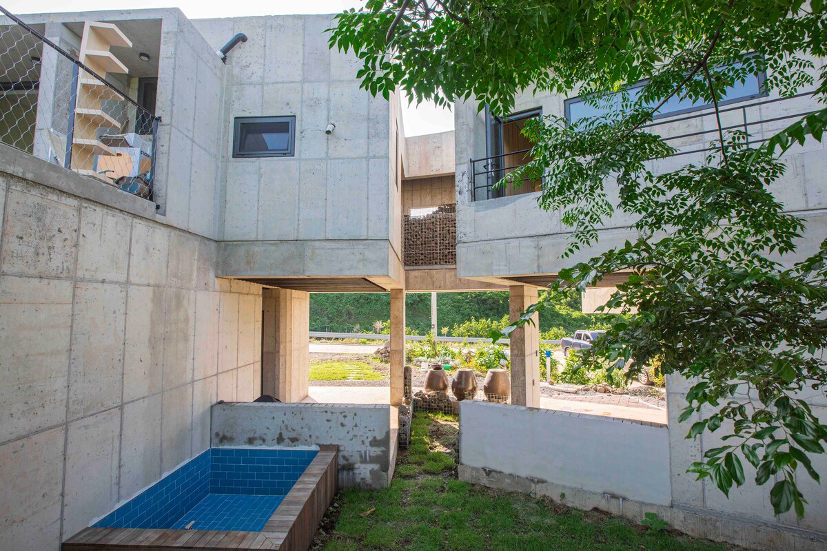 표선의 프라이빗한 감성 숙소. 집 23평, 정원까지 300평정도. 사계절 온수 노천탕 사용 가능. 12세 이상 부터 입실 가능해요.(12세 이하는 메시지로 문의 바랍니다/최대 3인까지 입실가능) [📌기본은 2인(퀸사이즈 침대, 이불)만 셋팅됩니다. 3인이시거나 2인이 따로 주무 실 경우 꼭‼️ 추가 셋팅 문의 바랍니다.] 표선해비치해수욕장까지 걸어서 3분~5분. (소금막해변 차로 3분/서핑) 웰컴 푸드제공(컵라면) - 1회제공(입실 하시는 날) (제공되는 것은 주기적으로 달라질 수 있습니다.) 음식 조리가 어렵습니다. (1구 인덕션이 있지만, 라면 등 냄새 나지 않는 국 정도 가능하세요. 고기굽기, 매운탕 등 냄새 심한 음식은 조리 하실 수 없습니다) 주변에 음식점, 마트 등 편의시설 차로 5분 내외로 갈 수 있어요. [근처 관광지] 표선해수욕장(도보 5분/ 차 1분), 성산일출봉(20분), 제주민속촌(3분), 제주허브동산(6분)있어요. 따라비오름도 15분 내외로 갈 수 있어요.