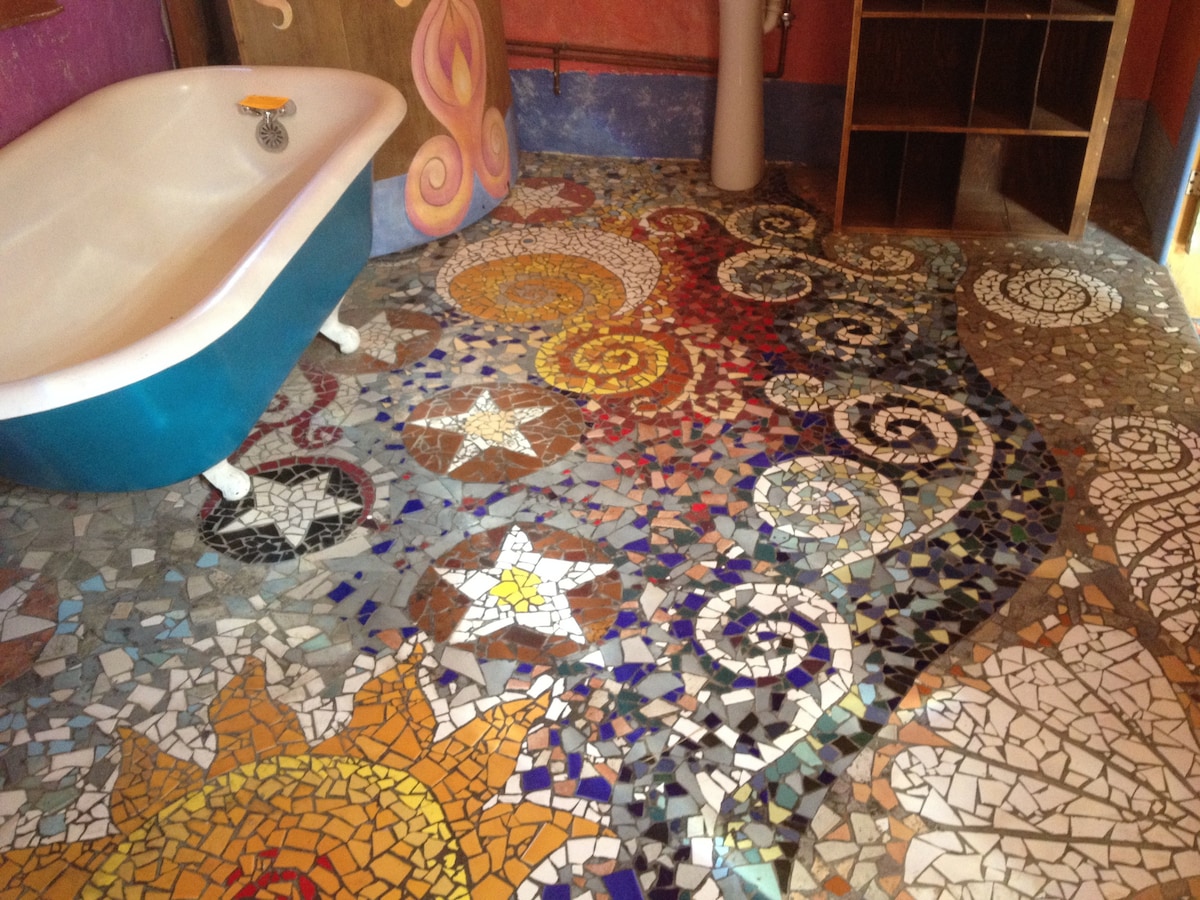 The eclectic house is just a 5 min walk from Bisbee's downtown restaurants, shops,and bars. This home promises to be a delight to all who stay here. This 1906 home was previously owned by well known muralist Rose Johnson, the home retains many of her original faux finishes. Stay as long as you like in this long or short term rental with covered porch and outdoor furniture. There is easy parking on the street in front of the house and just 8 steps up to the front door.