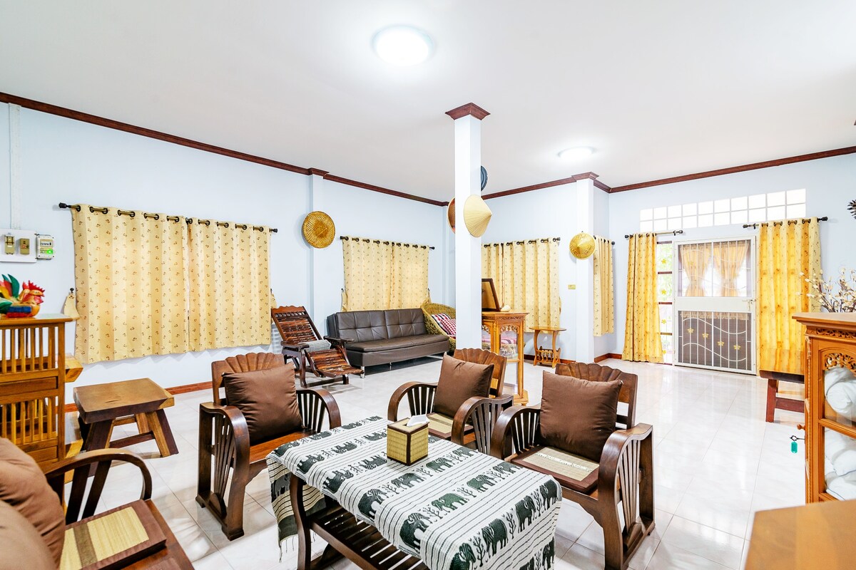 บ้านพักเรือนไม้ในสวน ริมแม่น้ำแวดล้อมด้วยธรรมชาติ สัมผัสอากาศบริสุทธิ์ สดชื่นปลอดมลภาวะบรรยากาศเงียบสงบ เป็นส่วนตัวมีจักรยานให้บริการฟรีสำหรับผู้พักไว้ขี่ท่องเที่ยวชมสวนและวิถีชาวบ้าน ติดต่อรถยนต์แท็กซี่เพื่อการเดินทางและท่องเที่ยวส่งสนามบินท่าเรือไปเกาะต่างๆ ได้ ทำเลที่ตั้งไม่มีรถสาธารณะผ่านและไม่มีร้านอาหารใกล้เคียง แต่เรียก Grab Car และ Grab Food ส่งได้ อาหารเช้าแจ้งได้-มีค่าใช้จ่าย สะดวกสำหรับผู้ที่ขับรถยนต์ส่วนตัวหรือเช่ารถยนต์ขับเองมีที่จอดรถฟรีอยู่ห่างจากสนามบินและตัวเมืองประมาณ 20 นาที