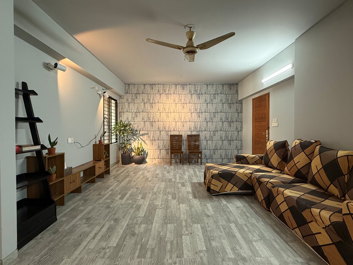 아름다운 에어비앤비 아파트 'Rest and retreat'에 오신 것을 환영합니다 스타일 넘치는 공간에서 온 가족과 함께 즐거운 시간을 보내세요. 잘 관리된 콘도에 위치한 아파트로, 멋지게 꾸며진 24시간 보안 시스템과 미르푸르의 중심지에 있으며 공항 근처에 있습니다. 침실 2개, 식사 및 드로잉 겸 거실 공간, 주방, 욕실 2개, 바란다 2개가 있습니다. 침대 2개는 에어컨이 설치되어 있습니다. 쇼핑몰과 레스토랑이 가까이에 있습니다. TV 2대가 설치되어 있습니다. 평화로운 휴가나 업무 시간을 보내실 수 있습니다.