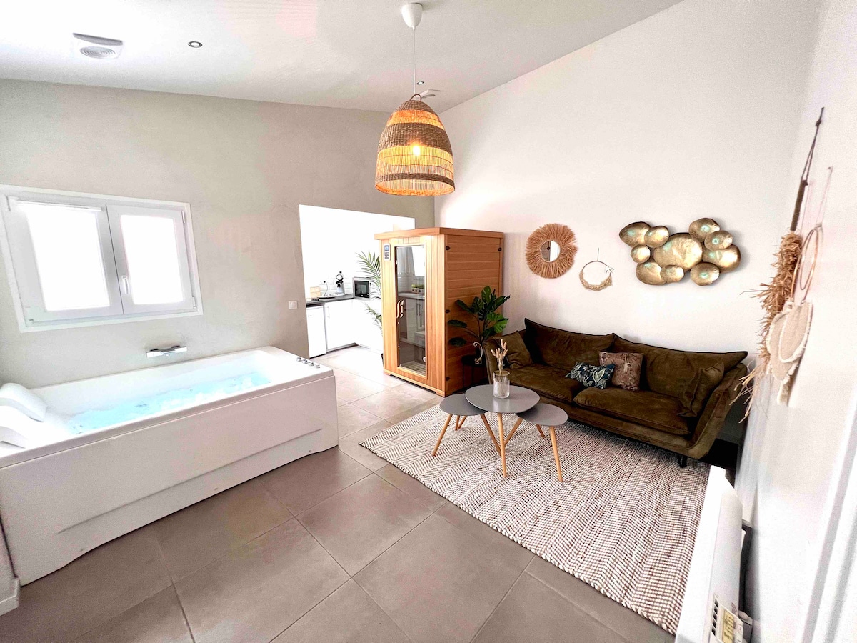 Bienvenue à la CASALOVA, un cocon luxueux au design unique avec un salon cinéma, un écran géant,lit rond king size,une cuisine haut de gamme en marbre, une salle de bain digne d’un spa avec jacuzzi deux personnes et une douche italienne. Ambiance chaleureuse, une déco végétale chic et prestations premium. Idéal pour un séjour romantique ou un moment de détente. Laissez-vous tenter par l’expérience Casalova pour des moments de détente inoubliables au cœur d’un cadre chaleureux et élégant.