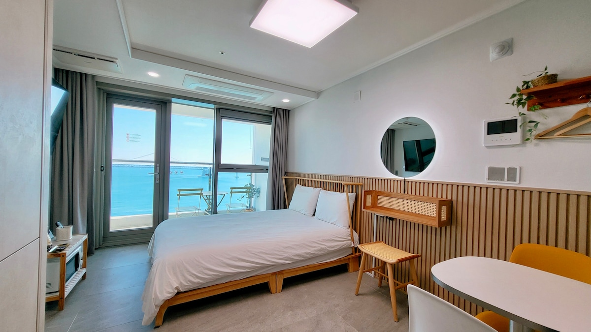 💕 주차비를 전액 지원해주는 인심좋은 호스트가 운영하는 광안리 에서 가장 최근에 건축된 최신건물! ❤️ 광안리해수욕장, 해변산책로, 인근 회센터. 밀락더마켓 등으로 둘러싸여 광안리 관광 핫플레이스의 가성비 👍 로케이션!!! 💕 내집처럼 편안한 숙소에서 바라보는 광안리 해변야경 뷰, 3천원으로 즐기는 뷰깡패 사우나시설! 군더더기없는 깔끔한 힐링공간에서 잊지못할 추억을 만들어 보세요 * 영어 응대가 가능하오니 외국인들도 마음 편하게 숙소를 이용하세요