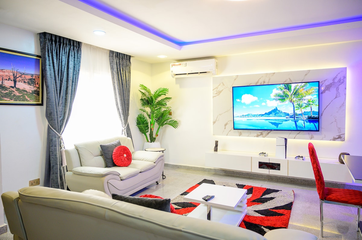 Welcome to Meka Homes—an elegant, smart apartment designed for comfort, privacy, and ease. Perfect for short and long stays, this home is located in a secure, gated estate with a private compound. It features king-sized beds in all ensuite rooms, smart TVs with streaming services, unlimited high-speed internet, backup power, and a well-equipped kitchen. Enjoy a peaceful environment with easy access to nearby grocery stores, pharmacies, and eateries.