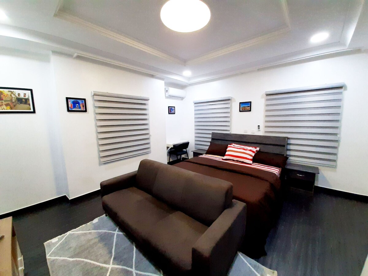 Located in the Upscale Neighborhood of Katampe Extension. Diplomatic drive to be precise. This large studio space is all that is needed for a comfortable and functional living. It is 5 mins from Maitama, 12 mins to Jabi lake Mall and 15 mins to Wuse with no single traffic gridlock along all access road. Katampe extension is surrounded by beautiful hills, making it the most ideal place for outdoor and hike loving guests