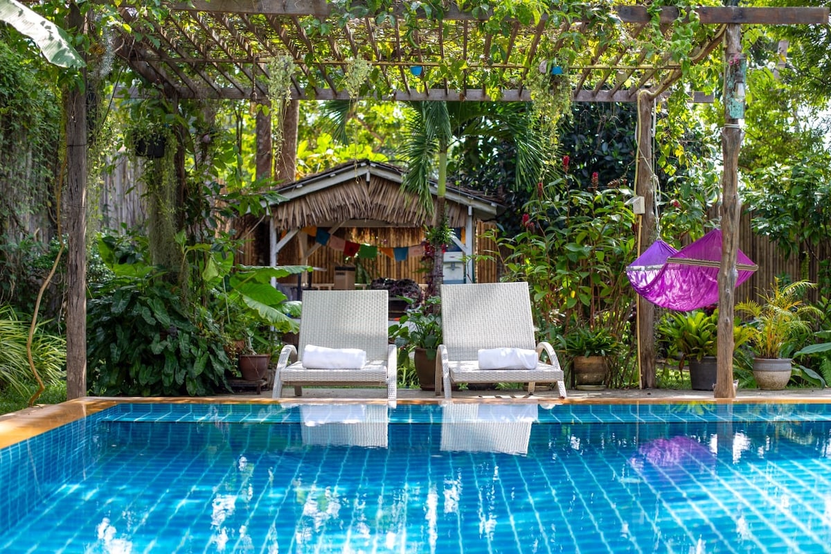 Feel at home in your retreat on Koh Phangan! - Size: 80m² with charming design and natural surroundings - Location: Just 5 minutes to the beach, restaurants and gym Amenities: - King-size bed and blackout curtains for restful sleep - Spacious, fully equipped kitchen - Big Balcony with a cozy hammock - Ambient lighting for relaxing evenings - Netflix and high-speed WiFi - Ergonomic workspace - Rainforest shower - Eco-friendly paint for a healthier environment Your private paradise awaits!
