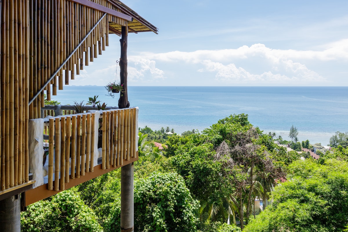 We have 2 almost identical Eco Bamboo bungalows in a secluded eco retreat down a quiet foot path nestled in tropical garden with a beautiful seaview. This unique A-frame bungalow is made almost entirely of bamboo and wood and as close to live in nature as you can get. It is simple, minimalist, but elegant design for couples or individual travelers who would like to have and share a natural living experience.