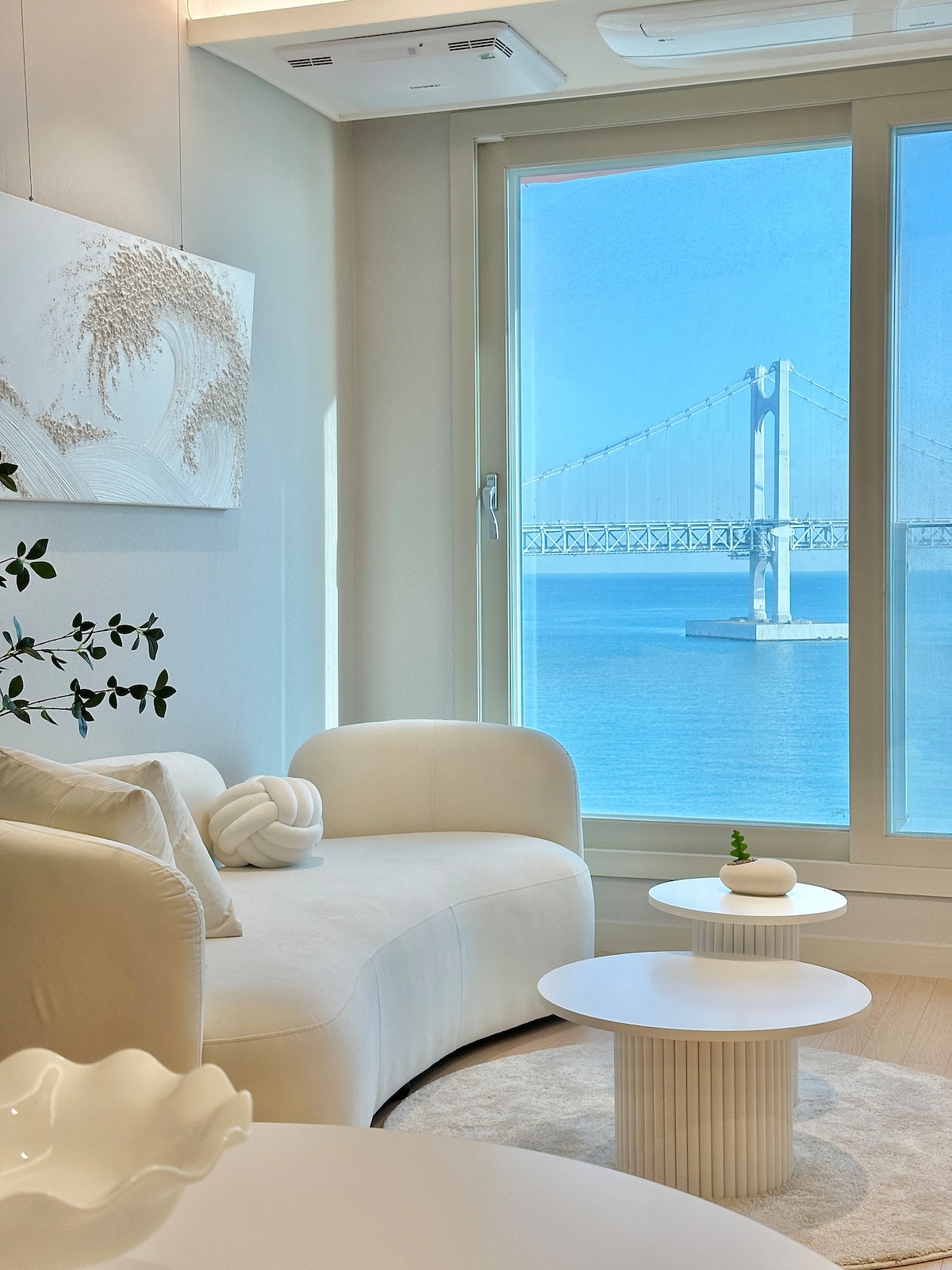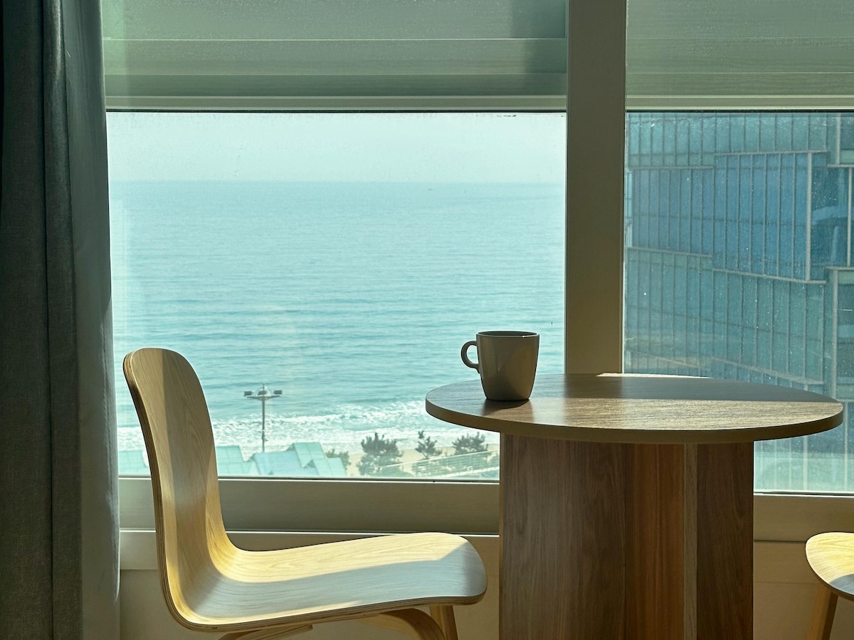 Luxury 3 Bedroom Seaview Apartment. 60 second walk to the Haeundae Beach. Total beachfront resort experience! Master bedroom w/ two queen sized beds + 2 more bedrooms (queen sized beds in each room) + additional queen sized, memory foam, foldable floor mattresses available. Enjoy the beautiful waterfront scene, and experience the wonderful restaurants nearby!! ------------------------------------------- ** โบ ์นจ๊ตฌ(์, ์ด๋ถ, ๋ฒ ๊ฐ)๋ ์ธ์์ ๋ง๊ฒ ์ค๋น๋ฉ๋๋ค. **