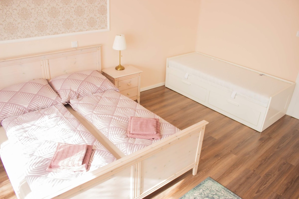 Hajduszoboszlo ์ค์ฌ๊ฐ์ ์์นํ ํ๋์ ์ธ ์ ์ํํธ์ ์ค์ ๊ฒ์ ํ์ํฉ๋๋ค! Hajduszoboszlo๊ฐ ์ ๋ช ํ ์คํ์์ ๋ถ๊ณผ 50๋ฏธํฐ ๋จ์ด์ง ๊ณณ์ ์์นํ ๋์ ์ํํธ์ ๋๋ค. ์นจ์ค 3๊ฐ๋ฅผ ์ด์ฉํ ์ ์๋ ์ ํฌ ์ํํธ๋ 6์ธ๊น์ง ํธ์ํ๊ฒ ์๋ฐํ ์ ์์ต๋๋ค. ์ด ์ํํธ์๋ ์์ด์ปจ๊ณผ ๋ฐ์ฝ๋๊ฐ ๊ตฌ๋น๋์ด ์์ต๋๋ค. ํ์ง์๋ณด์ฌ๋ก์์ ํธ์ํ ์๋ฐ์ ์ํ๋ ๊ฐ์กฑ ๋๋ ์น๊ตฌ๋ค์๊ฒ ์์ฑ๋ง์ถค์ ๋๋ค.