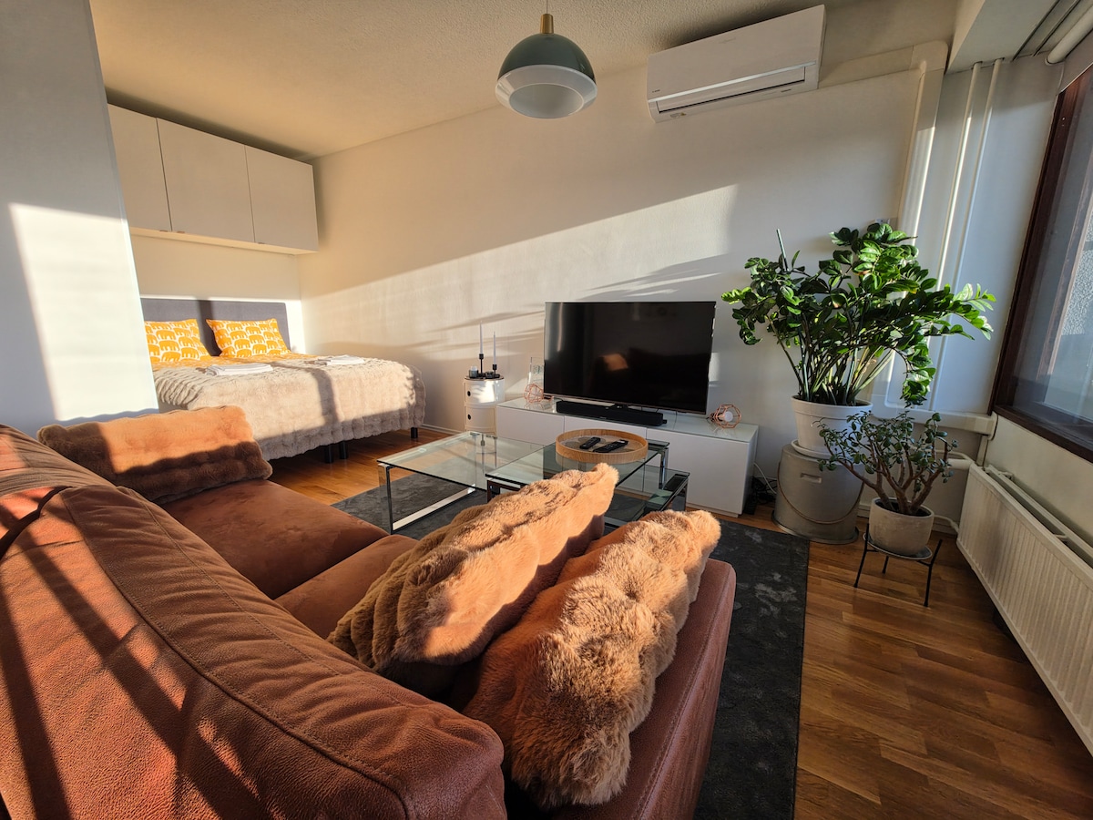 - Relax in our freshly renovated 6th-floor studio and admire stunning city views toward Töölö Bay - Just 50m from the metro and 70m from a 24/7 supermarket, surrounded by countless restaurants - Fast Wi-Fi, a comfortable new queen-size bed, and a fully equipped kitchen - Located in the heart of Helsinki, only 10min from the Central Railway Station by public transportation. With this prime location, exploring and enjoying Helsinki has never been easier.