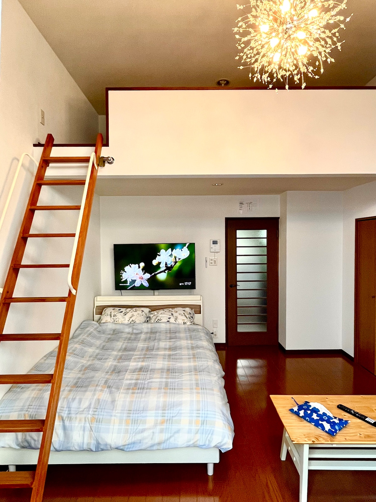 This extra high ceiling 24 sq.m loft apartment is well equipped and designed to make your stay comfortable & homely. Tenjin subway station, Akasaka station, Tenjin bus station, and Nishitetsu Fukuoka station are 10-11 minutes walk away, making this room a perfect base to explore Kyushu. Suitable for families with young & older kids, & groups. Surrounded by local restaurants, cafes, convenient stores, and shops with great access to public transportation. A parking lot is right next